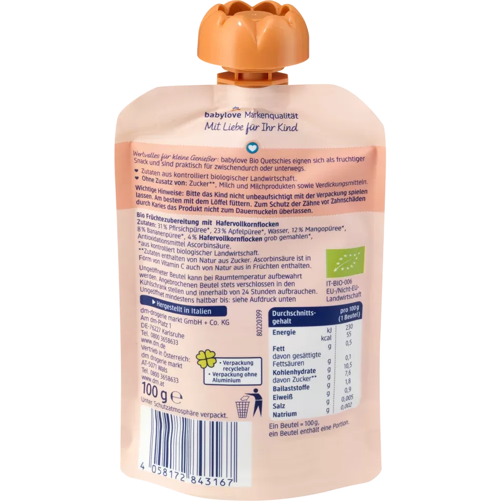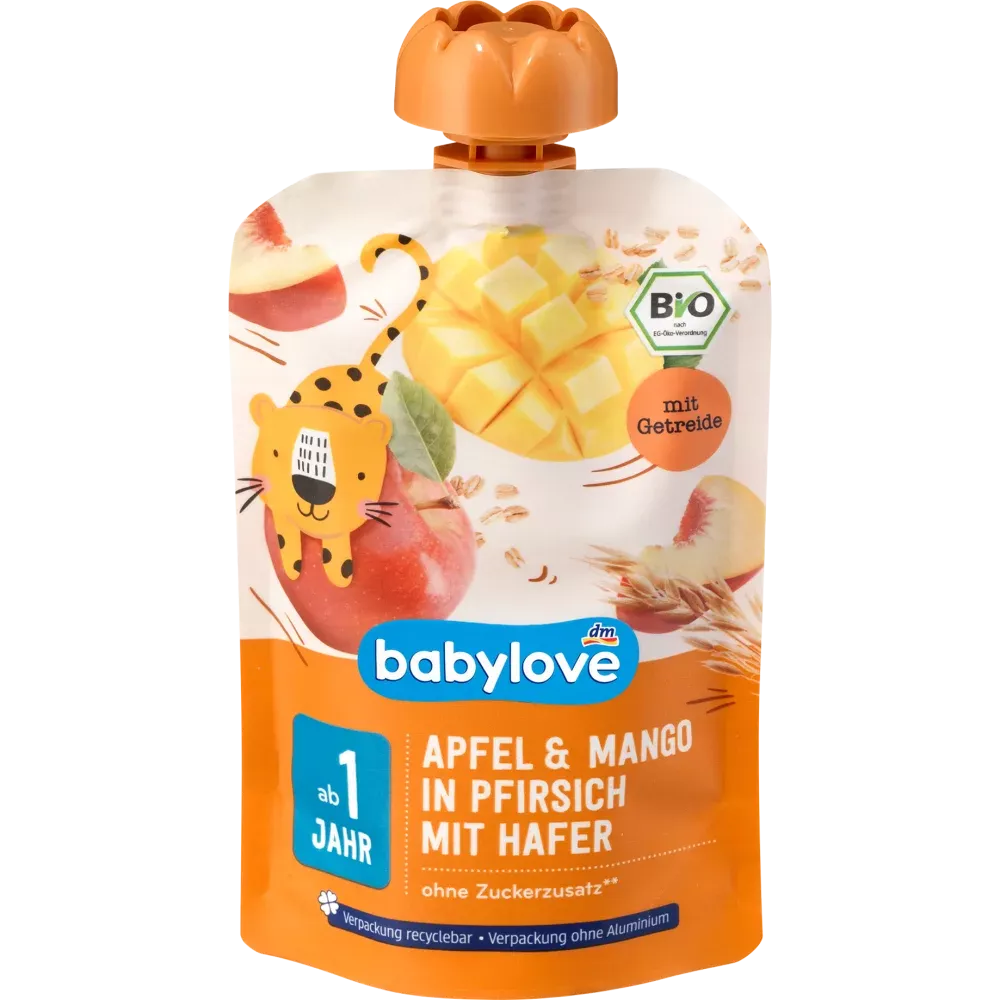 babylove Knijp appel & mango in perzik met haver recyclebaar vanaf 1 jaar, 100 g