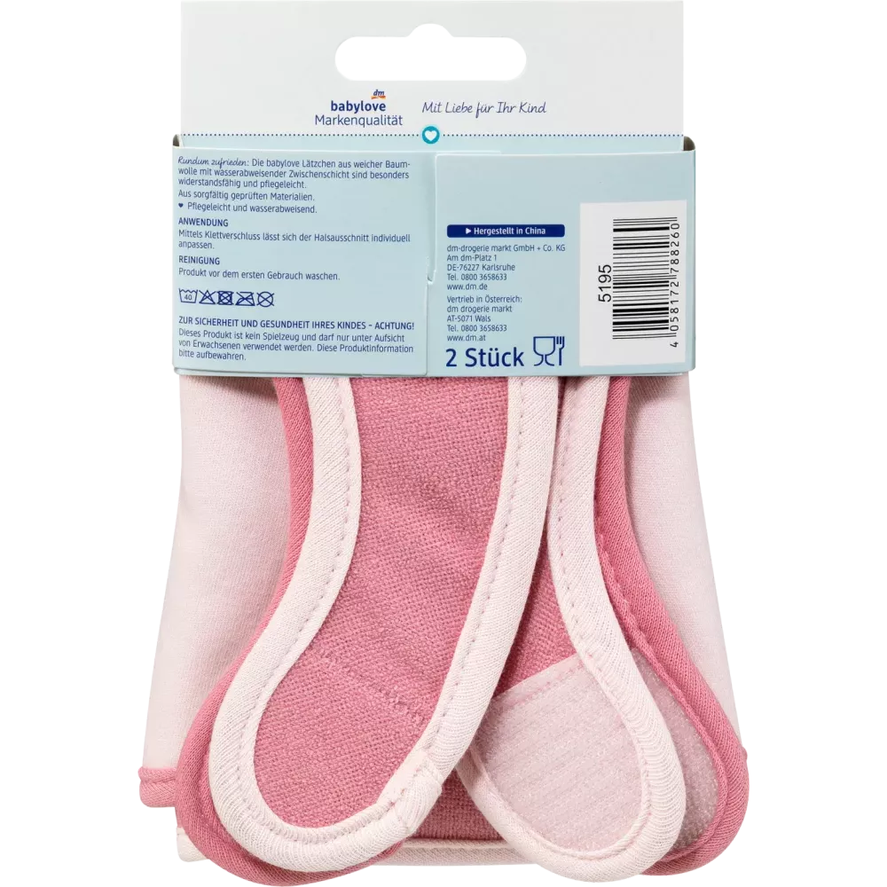 Dit babylove slabbetje van 2 is gemaakt van zacht katoen met een muismotief en heeft een waterafstotende tussenlaag, waardoor het bijzonder resistent en gemakkelijk te onderhouden is. Het is gemaakt van zorgvuldig geteste materialen en voldoet aan STANDARD 100 van OEKO-TEX. De babylove producten worden regelmatig gecontroleerd door erkende, onafhankelijke testinstituten.