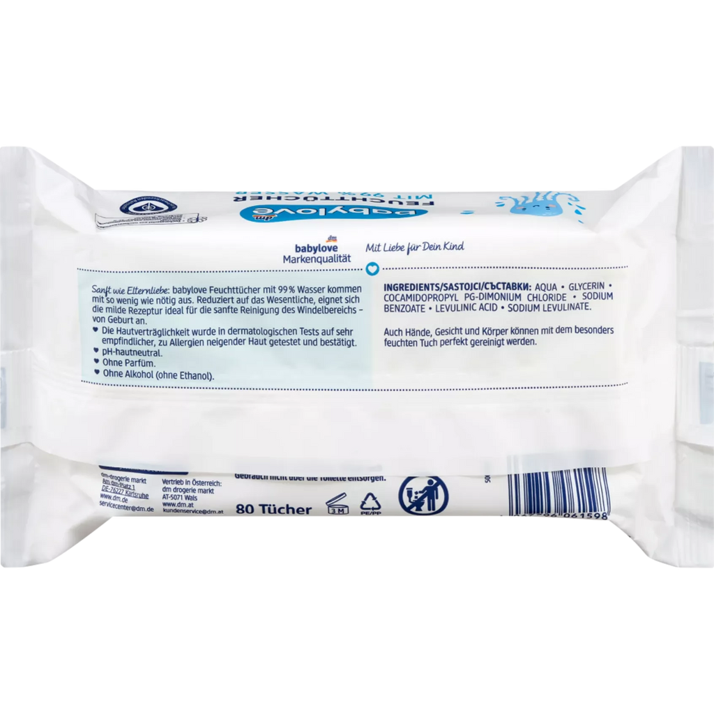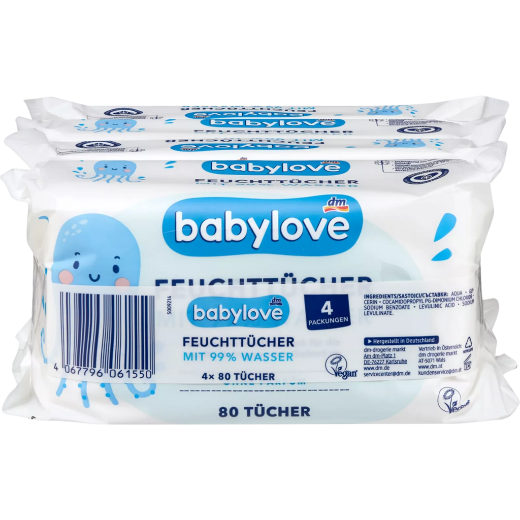 babylove Natte doekjes met 99% water (4x80 stuks), 320 stuks