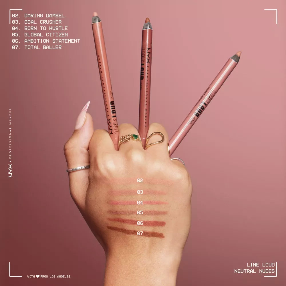De Line Loud Lip Liner Daring Damsel 02 van NYX Professional Makeup is een langhoudende lipliner die tot 24 uur blijft zitten. Hij laat een matte finish achter en kan alleen of met een lipstick worden gebruikt.