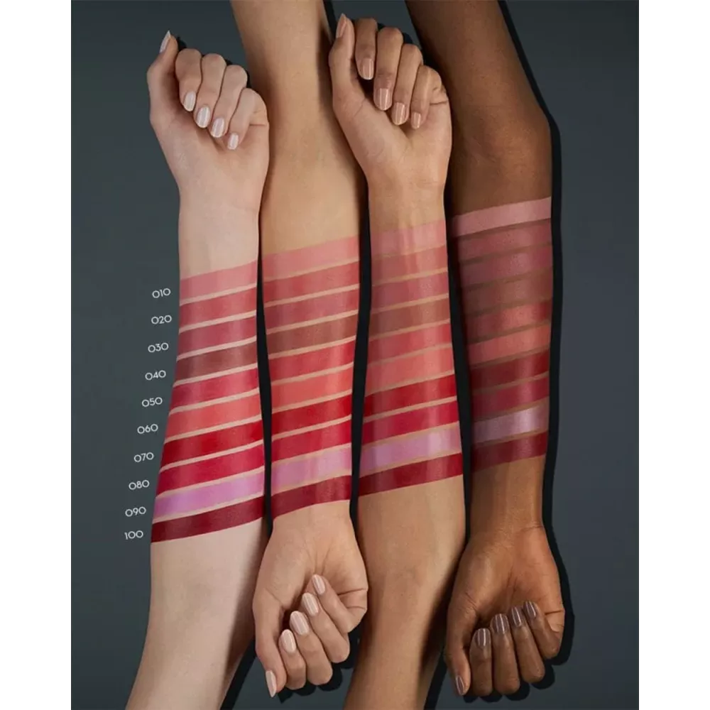 De Catrice Full Satin Lipstick Full Of Happiness 050 straalt pure levensvreugde uit. De romige lipstick met satijnen finish zorgt voor een intense, sterk gepigmenteerde kleurervaring op de lippen. Het geeft een licht, fluweelachtig gevoel en hydrateert en verzacht de lippen dankzij de waardevolle actieve bestanddelen zoals wilde rozenolie en vitamine C. Het kleurenpalet biedt 10 Full Satin Lipsticks, variërend van zachte nude tinten tot bessentinten en warme roodtinten.