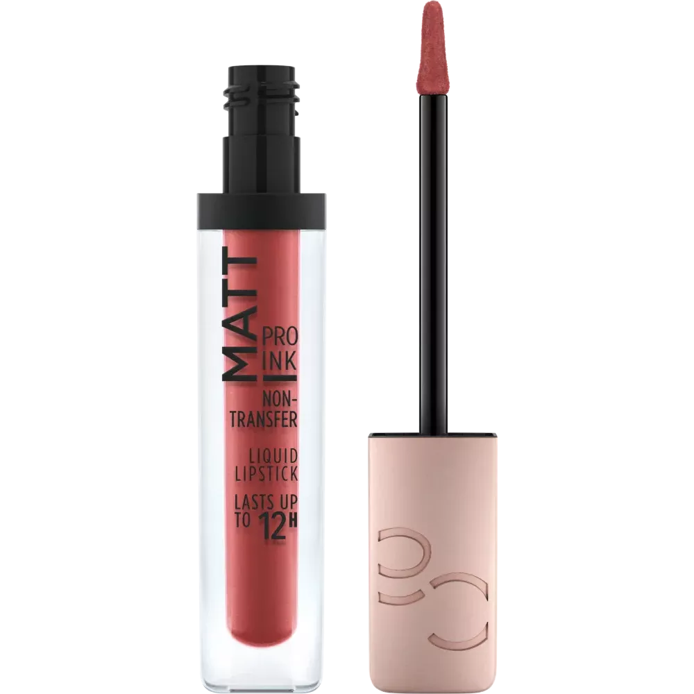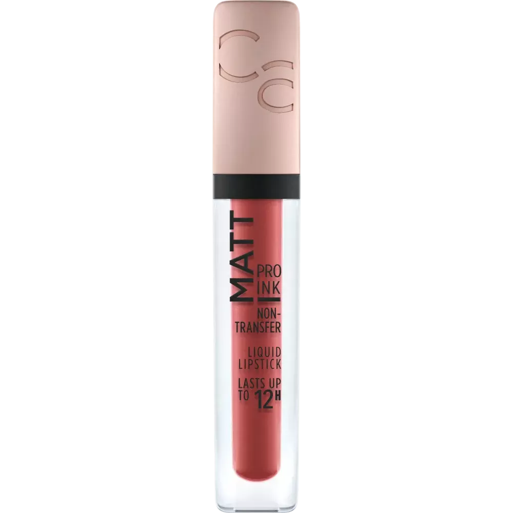 De Catrice Matt Pro Ink Non-Transfer Liquid Lipstick This Is Attitude 030 houdt stand en houdt stand - 12 uur lang! De lipstick met moringaboter is de ideale metgezel voor een lange dag, want hij overleeft elke situatie in het leven. De vloeibare textuur draagt aangenaam licht op de lippen, droogt snel en laat een gelijkmatige matte finish achter. De non-transfer Liquid Lipstick is verkrijgbaar in in totaal 10 tinten: van nude tinten tot heldere lente- en zomerkleuren en klassieke roodtinten.