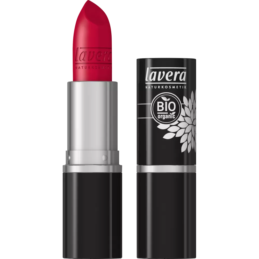 De klassieke lippenstift voor elke gelegenheid: Lavera Colour Intense Lipstick Timeless Red 34 geeft de lippen een adembenemende kleur dankzij hoogwaardige pigmenten. De textuur verwent met biologische bloesemboter van roos, malve en limoen en biedt delicate verzorging met zachte bescherming.