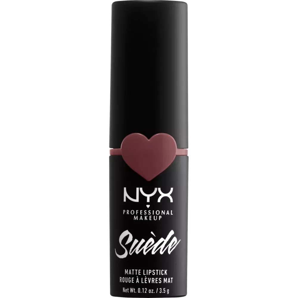 NYX PROFESSIONAL MAKEUP Suede Matte Lipstick lavendel en kant 14 met een nieuwe formule is geïnspireerd op de Suede Matte Lip Liner. De superlichte lipstick bedekt je lippen met poederige matte kleur voor een intense matte finish. En hij is prachtig gepresenteerd met een schattig hartjuweel.
