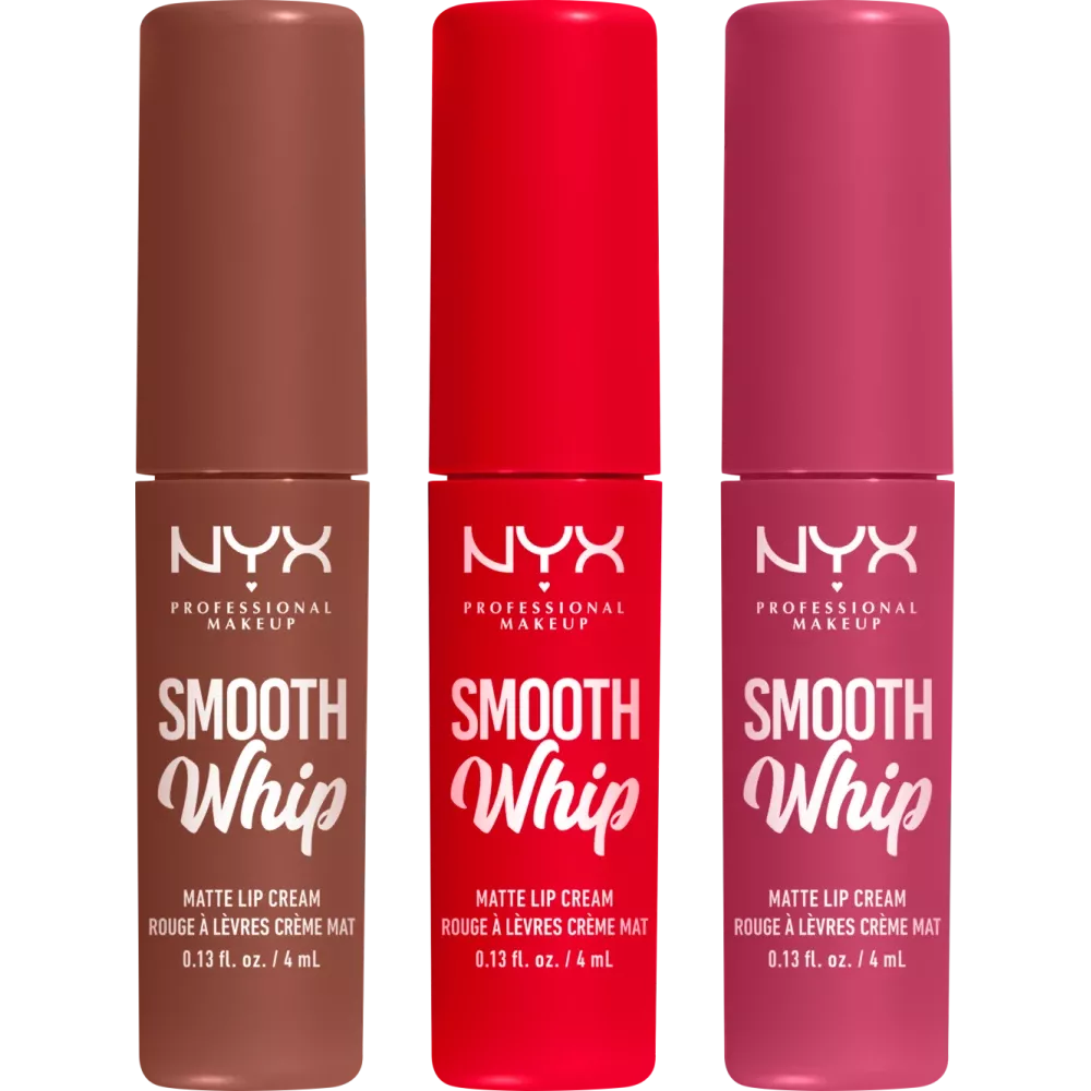 Het XMAS Holiday Smooth Whip Matte Lip Cream Trio van NYX Professional Make-up is perfect als cadeau voor alle lipstickliefhebbers. De lipcrèmes hebben een hydraterende gladde textuur, waardoor ze gemakkelijk aan te brengen zijn. De lichte, opgeklopte formule bevat sheaboter en cacaoboter om uitdroging van de lippen te voorkomen. Dankzij de zachte en flexibele applicator is de lipcrème precies en gemakkelijk aan te brengen.