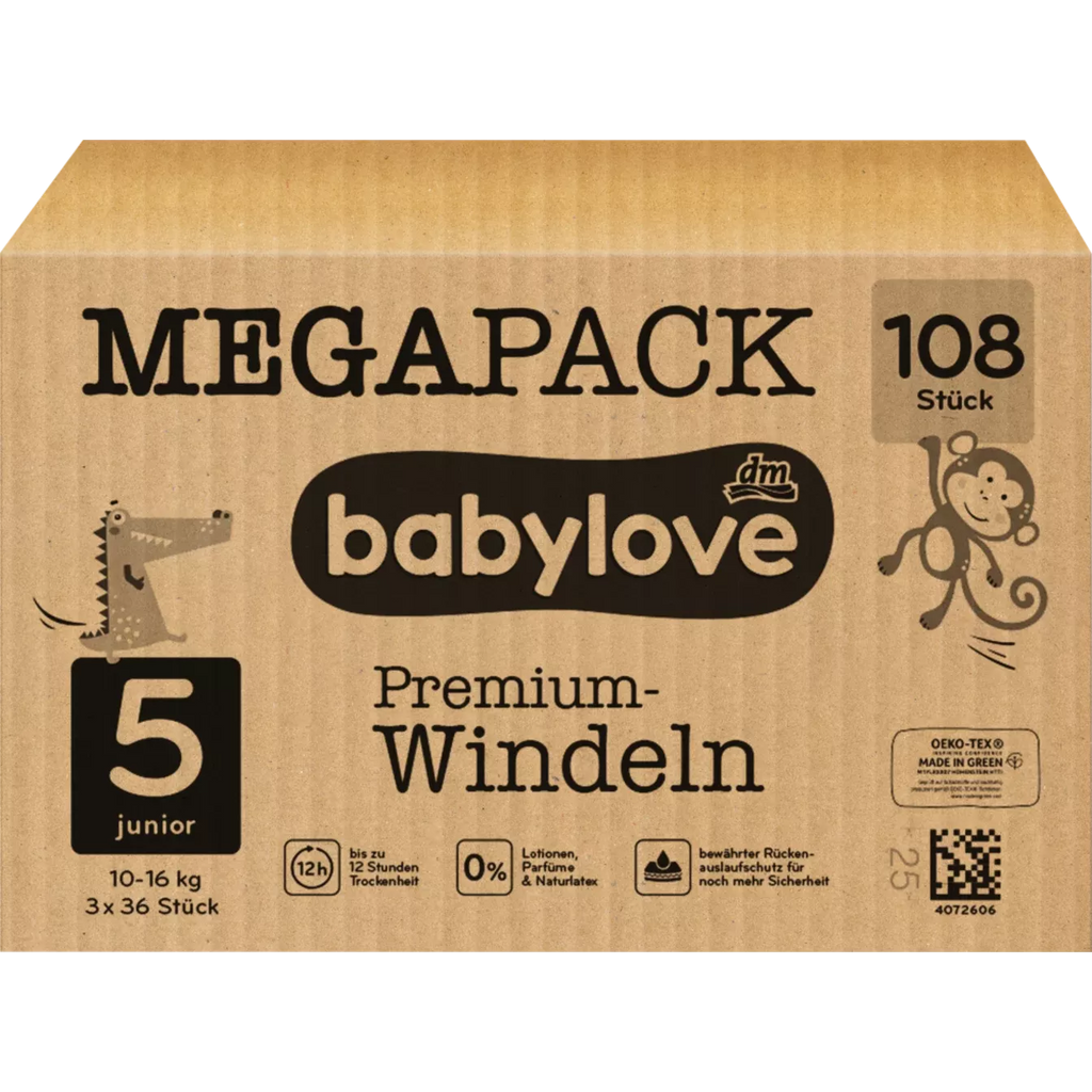 babylove Luiers Premium maat 5 Junior (10-16 kg), Megapack, 108 stuks.