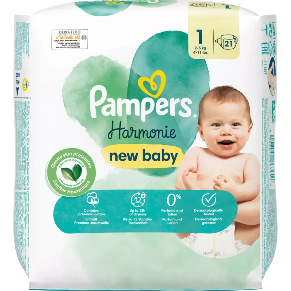 Pampers Luiers Harmonie maat 1 Newborn (2-5 kg), 21 stuks.