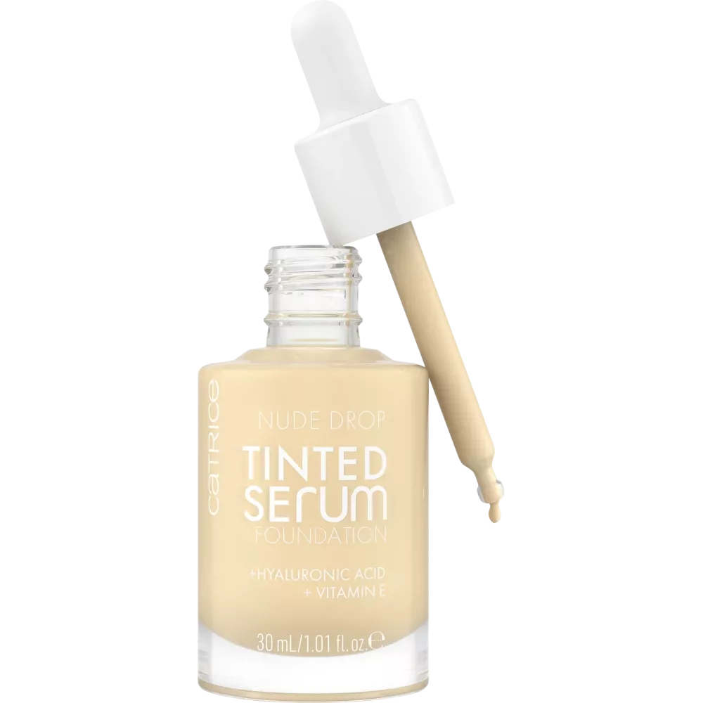 Catrice Nude Drop Tinted Serum Foundation 002N heeft een vederlichte textuur als een serum en een werking als make-up. Het overtuigt met zijn zeer vloeibare, gewichtloze en ademende formule. Het bevat hyaluronzuur en vitamine E voor een 24-uurs hydraterend verzorgingseffect. Dankzij de speciaal gecoate pigmenten is de foundation ook bijzonder langhoudend en geeft hij met zijn opbouwbare, lichte tot medium dekking een stralende teint met een natuurlijke matte finish. De formule is parfumvrij en geschikt voor de gevoelige huid.