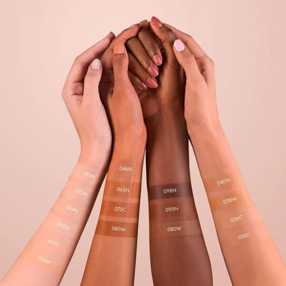 INGREDIËNTEN: AQUA (WATER), ISODODECAAN, DIMETHICONE, GEHYDROGENEERD POLYDECEEN, GLYCERINE, C12-15 ALKYLBENZOAAT, PEG-10 DIMETHICONE, DIMETHICONECROSSPOLYMEER, BUTYLEENGLYCOL, CETYL PEG/PPG-10/1 DIMETHICONE, SILICIUMDIOXIDE, TRIMETHYLSILOXYSILICAAT, NATRIUMHYALURONAAT, TOCOFEROL, NATRIUMCHLORIDE, MAGNESIUMSULFAAT, TOCOFERYLACETAAT, TRIETHOXYCAPRYLYLSILAAN, DISTEARDIMONIUMHECTORIET, METHICONE, PROPYLEENCARBONAAT, ETHYLHEXYLGLYCERINE, ALUMINIUMHYDROXIDE, FENOXYETHANOL, NATRIUMBENZOAAT, NATRIUMDEHYDROACETAAT, BENZOËZUUR, DEHYDROAZIJNZUUR, CI 77491 (IJZEROXIDEN), CI 77492 (IJZEROXIDEN), CI 77499 (IJZEROXIDEN), CI 77891 (TITAANDIOXIDE).