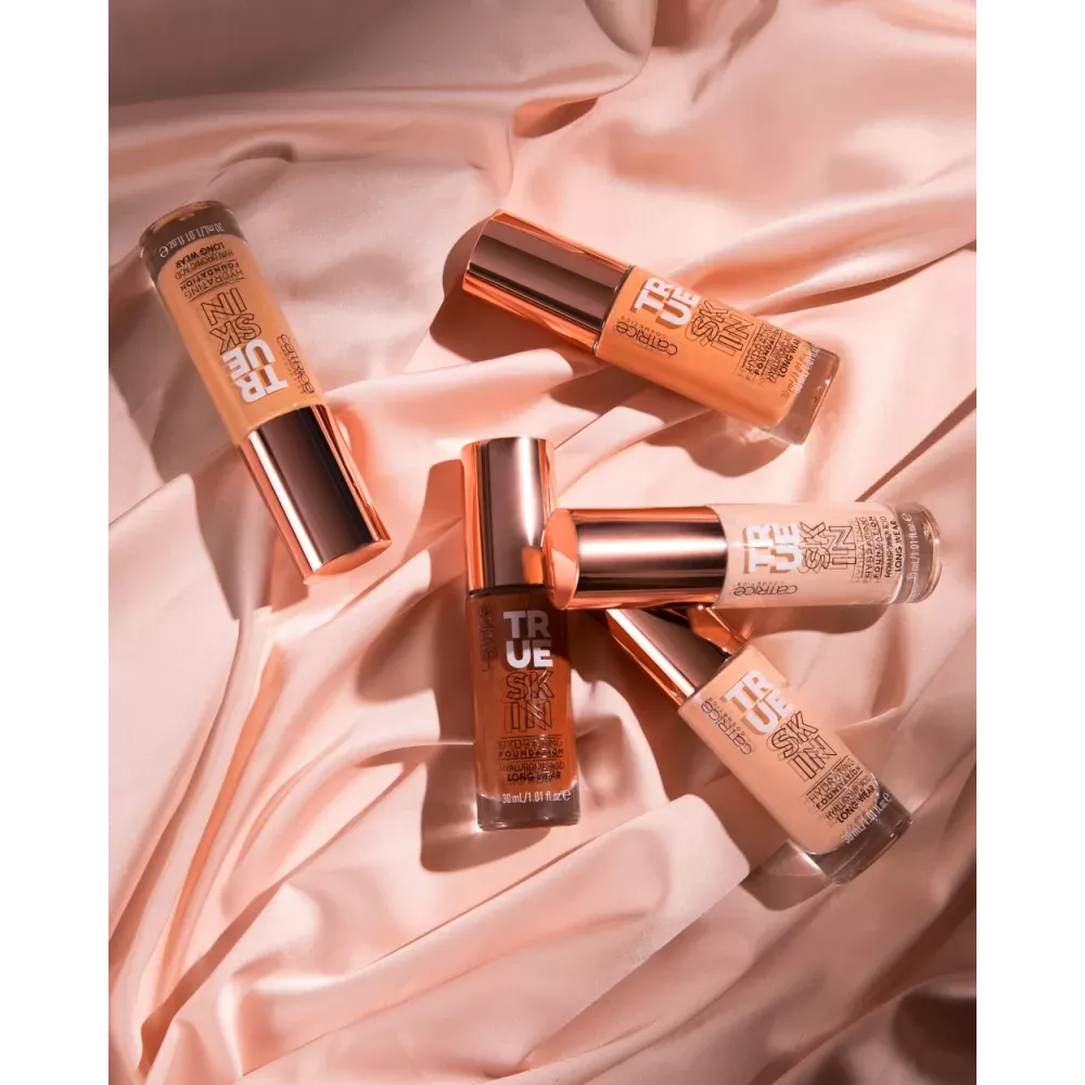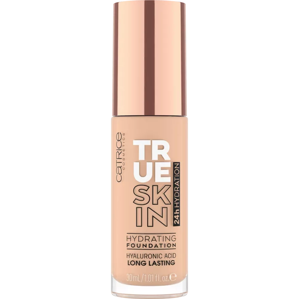 Catrice True Skin Hydrating Foundation Cool Nude 007 is het schoonheidsgeheim voor een natuurlijke en egale teint. De voedende, langhoudende make-up met medium tot hoge opbouwende dekking vervaagt zachtjes kleine oneffenheden en roodheid terwijl hij vederlicht op de huid ligt voor een onvergelijkbare natuurlijke matte "echte huid" finish. De veganistische formule met hyaluronzuur en watermeloenzaadolie hydrateert intens.