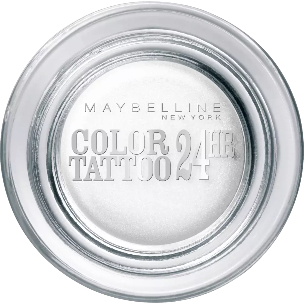 De langhoudende crèmegeloogschaduw met inkttechnologie blijft tot 24 uur lang op volle kleurintensiteit zitten. Maybelline New York Eyestudio Color Tattoo 24h in 45 Infinite White nestelt zich niet in de plooi.
