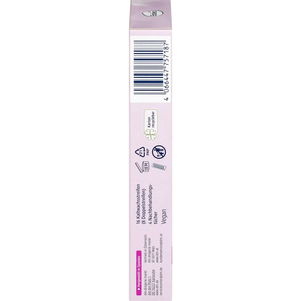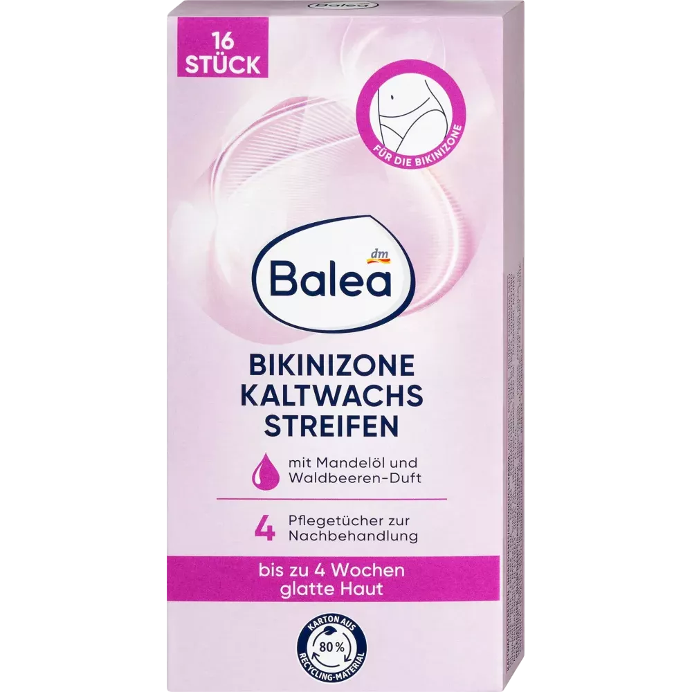De koude waxstrips voor de bikinilijn van Balea zorgen voor een bijzonder effectieve verwijdering van lichaamshaar. Ze laten ook een adembenemende geur van wilde bessen achter en een zijdezacht resultaat. De verpakking bevat verzorgingsdoekjes voor nazorg en het verwijderen van waxresten.