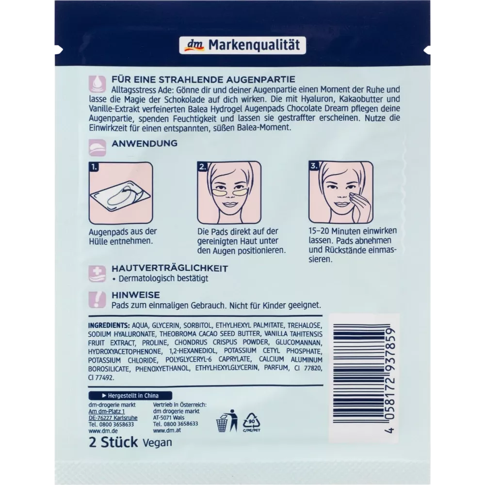 Balea Oogkompressen Hydrogel Chocolate Dream White Chocolate (1 paar), 2 st.