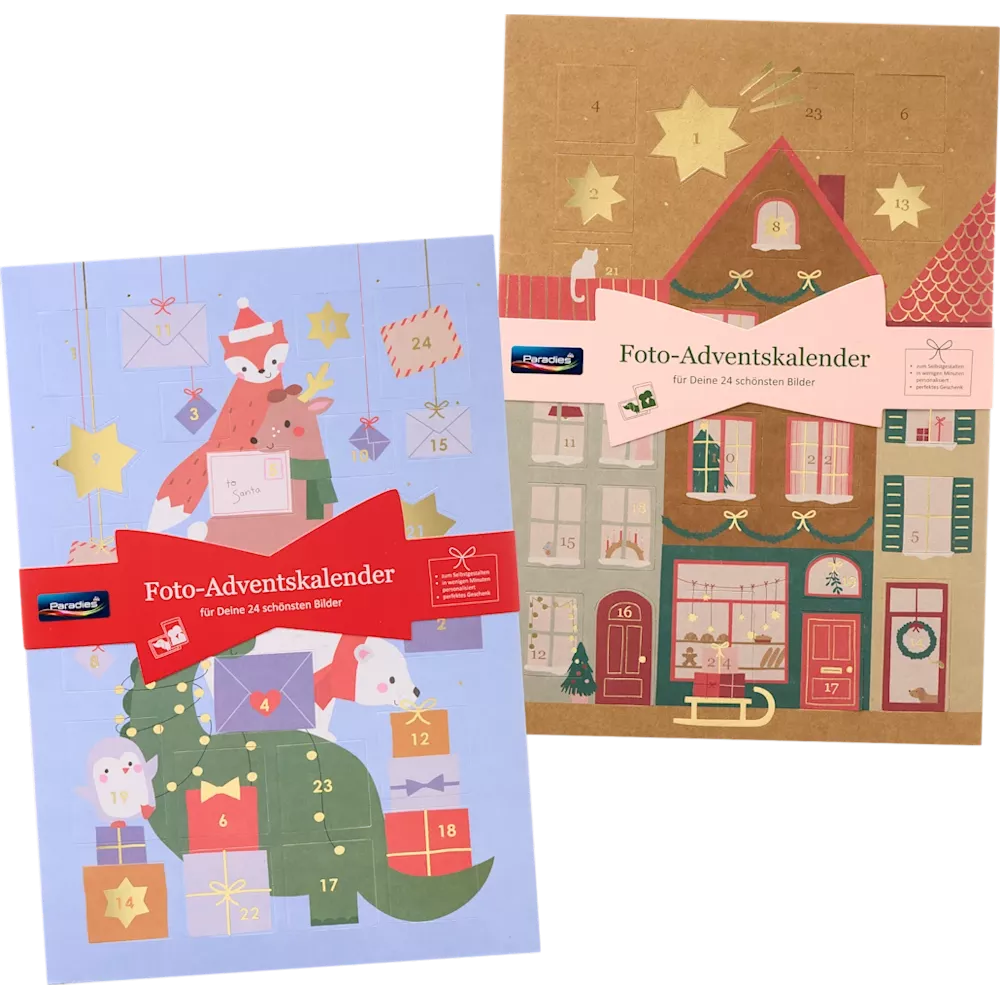Met de Foto Adventskalender van Paradies kun je de periode voor Kerstmis een persoonlijk tintje geven. Achter elk van de 24 deurtjes is ruimte voor individuele favoriete foto's die dag na dag speciale herinneringen oproepen. De hoogwaardige motiefprint en elegante folie-afwerking maken de kalender tot een echte blikvanger. Als creatief cadeau voor familie en vrienden of als feestelijke decoratie voor je eigen huis - deze kalender brengt vreugde, verrassing en een vleugje nostalgie in de adventstijd.