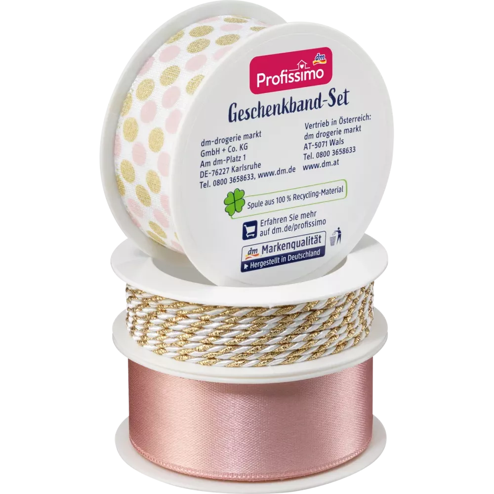 Mooi en veelzijdig: De Profissimo koord- en lintenset in rosé/wit-goud/wit is ideaal voor het inpakken, versieren en verfraaien van je cadeaus. Het wordt gekenmerkt door de hoge kwaliteit, made in Germany.