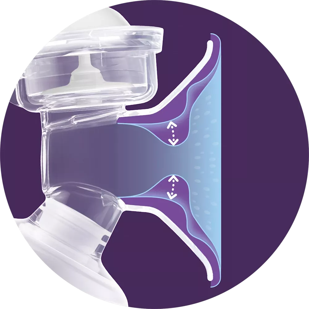Geniet van het zachte comfort van de draagbare borstkolf van Philips Avent. Met Natural Motion technologie, geïnspireerd op het zuigen van de baby voor een snelle melkstroom. Pas eenvoudig het ritme en het vacuüm aan. Past op alle tepelmaten.