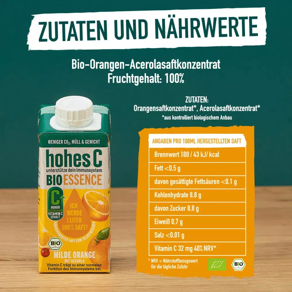 hohes C Sapconcentraat, biologische essence, milde sinaasappel met acerola, 0,2 l