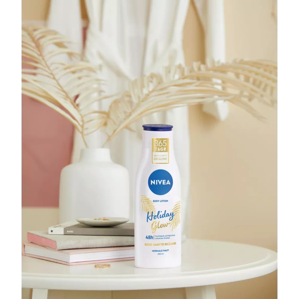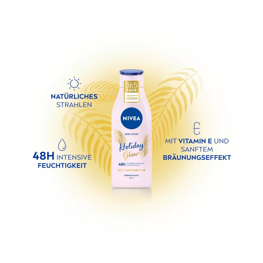 La lotion pour le corps NIVEA naturellement belle est idéale pour tous ceux qui veulent une peau radieuse et un beau teint - tous les jours. Le nouveau lait pour le corps au DEEP CARE SERUM, à la vitamine E et au bronzage doux réunit 3 effets en un seul lait pour le corps : un soin hydratant intensif pendant 48h, une peau veloutée et un éclat naturel petit à petit. Même la peau sèche devient visiblement souple et naturellement belle. Pour un beau teint - tous les jours.