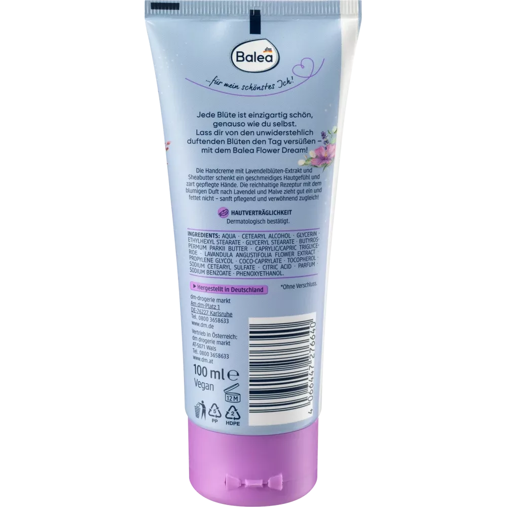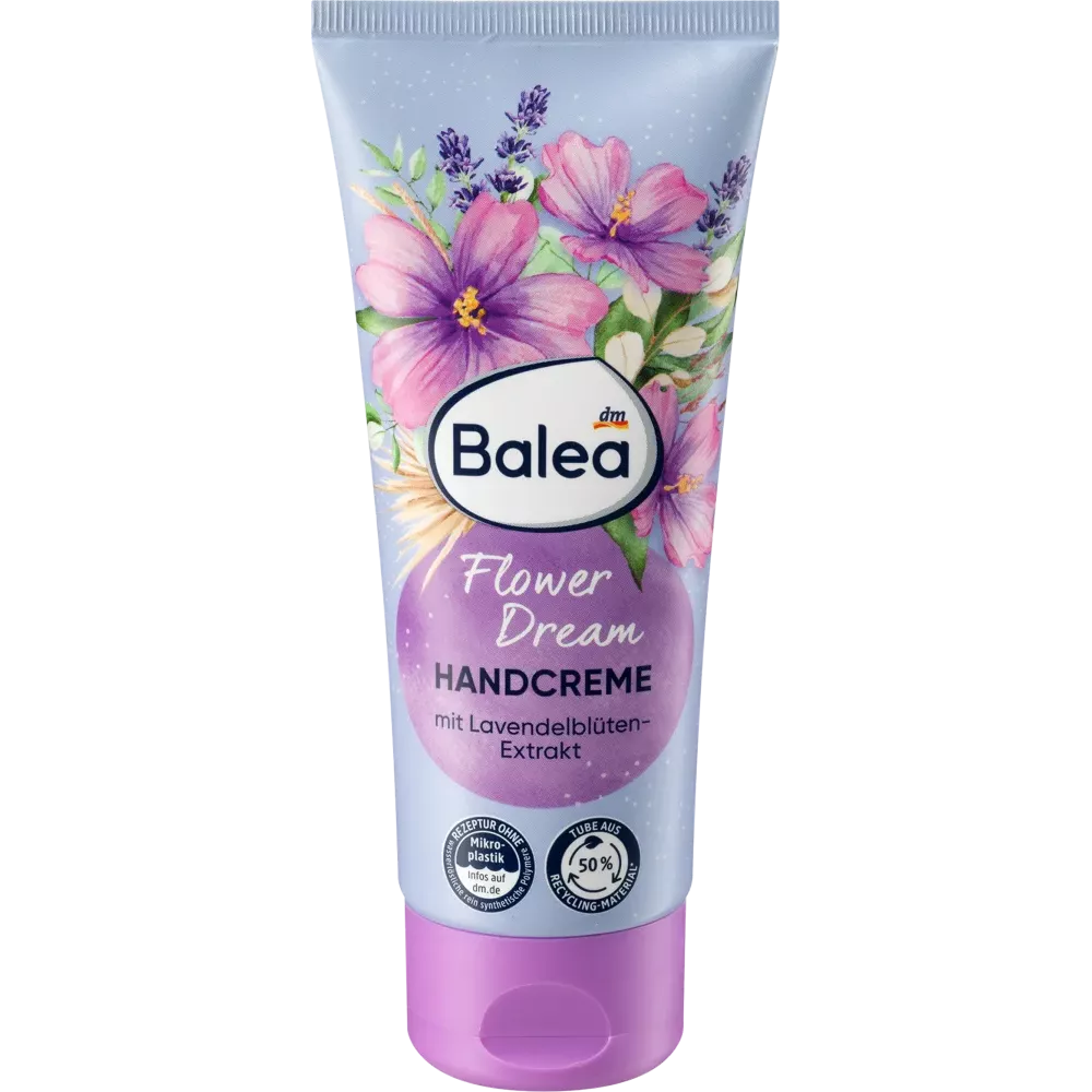 La crème mains Flower Dream à l'extrait de fleur de lavande et au beurre de karité laisse la peau douce et les mains merveilleusement soignées. Sa formule riche, au parfum floral de lavande et de mauve, pénètre rapidement et est non grasse. Elle est formulée sans microplastiques ni polymères hydrosolubles purement synthétiques.