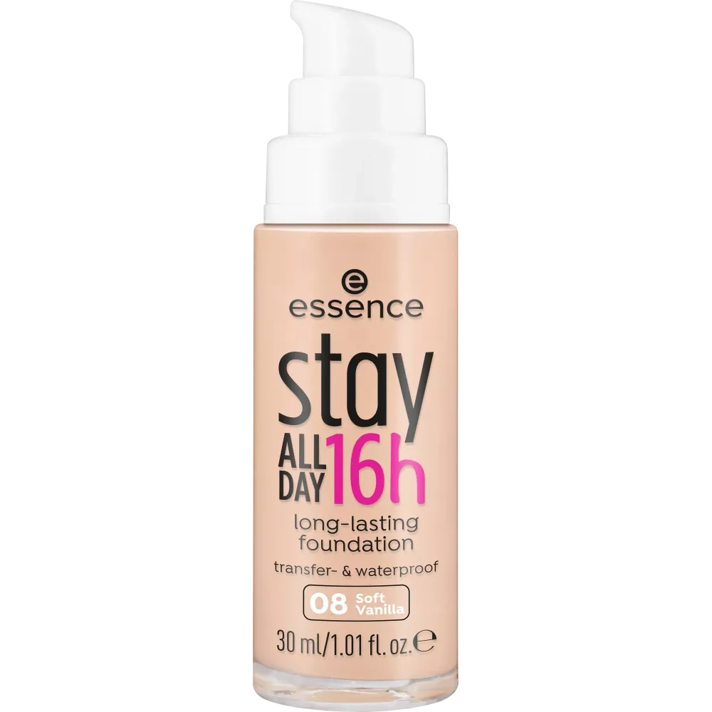 Le maquillage séjour All Day 16h fond de teint longue tenue Soft Vanilla 08 est exempt de silicones, de parabènes, de particules microplastiques, d'alcool, de parfum et d'huile et est donc une mise à jour du classique d'essence cosmetics, qui convainc les consommateurs depuis des années, sans augmentation de prix. Le fond de teint dans le flacon en verre de haute qualité a une texture super douce, donne au teint un aspect uniforme et lisse jusqu'à 16 heures et permet une couvrance moyenne à élevée. Il est également résistant à l'eau, au masque et au transfert.