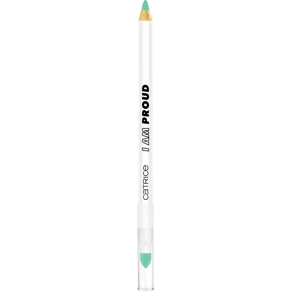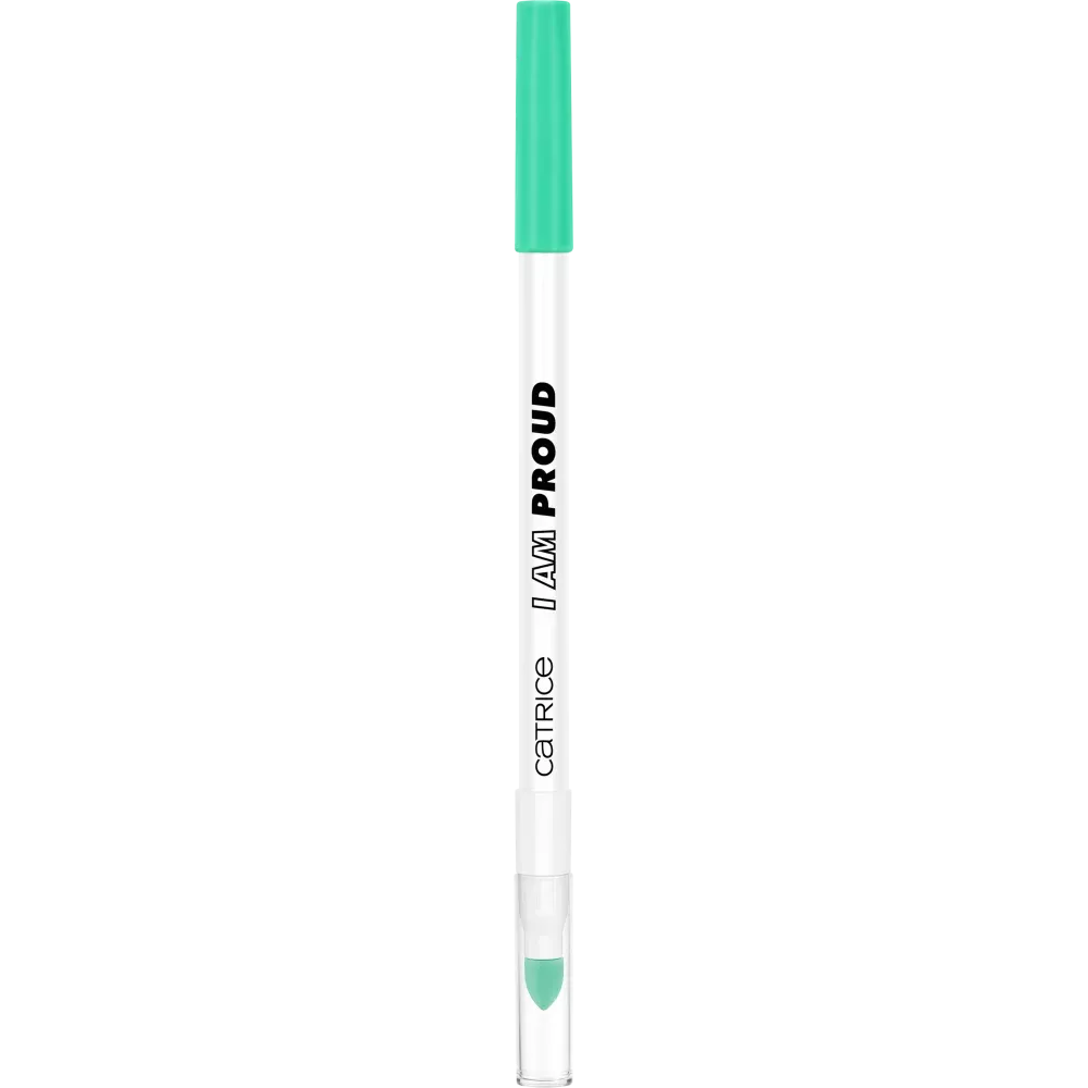 Le crayon yeux double embout Catrice Who Am I, teinte C02 I Am Proud, permet de créer des looks précis et estompés. Une extrémité du crayon double embout est dotée d'une pointe eyeliner précise, tandis que l'autre intègre une éponge pour estomper. La pigmentation intense du kajal offre une couvrance élevée dans un turquoise vibrant.