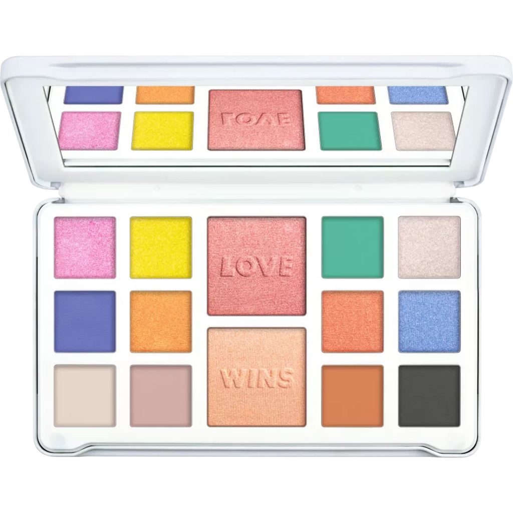 La palette de fards à paupières et de maquillage Who Am I de Catrice contient des blushs et des illuminateurs, ainsi que différentes couleurs de fards à paupières. Vous avez le choix entre des finis mats et irisés pour les douze teintes, allant des teintes vibrantes aux teintes nude. Son boîtier en acier brossé de haute qualité, avec miroir intégré, scintille également aux couleurs de l'arc-en-ciel.