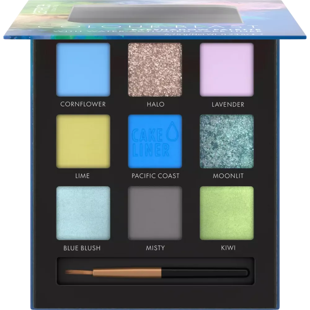 La palette d'ombres à paupières Catrice Colour Blast, teinte 020 Blue Meets Lime, propose neuf teintes coordonnées. Des mats doux, des métalliques audacieux et un eye-liner cake activé à l'eau s'unissent. Ce eye-liner cake se transforme en un liquide crémeux au contact du pinceau intégré et humidifié. Les couleurs hautement pigmentées s'estompent facilement pour un maquillage des yeux éclatant.