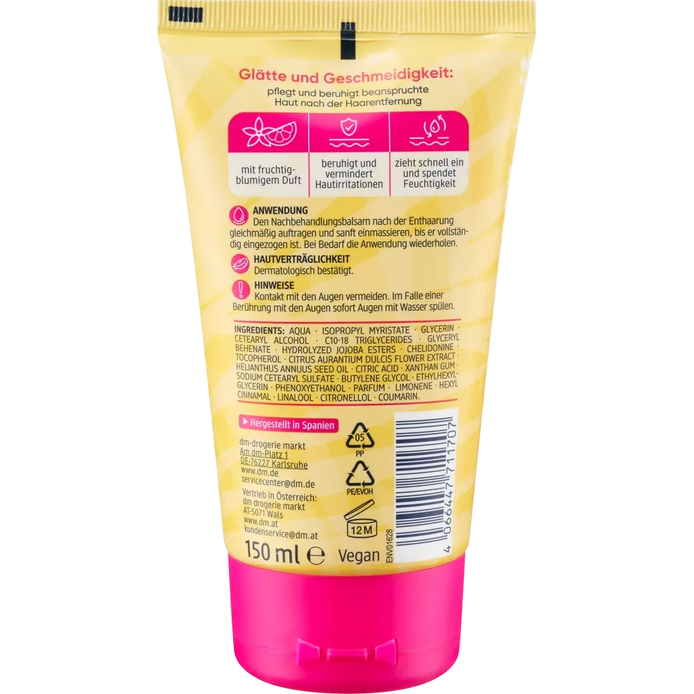 Le baume après-rasage Balea à l'extrait de fleur d'oranger laisse la peau douce et souple. Il réduit les irritations cutanées et apaise les peaux stressées après le rasage. Il pénètre rapidement et procure une hydratation intense.