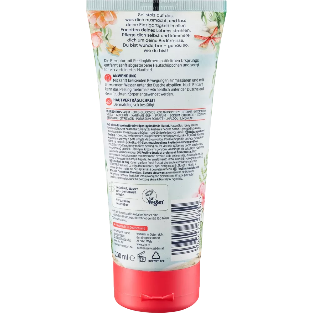 Le gommage douche Balea « Je ne suis pas comme les loutres » est doux pour la peau et nettoie en profondeur. Il contient des granules exfoliantes d'origine naturelle et offre un agréable parfum floral et fruité. Pour une expérience de douche merveilleuse. Formulé sans microplastiques ni polymères hydrosolubles 100 % synthétiques.