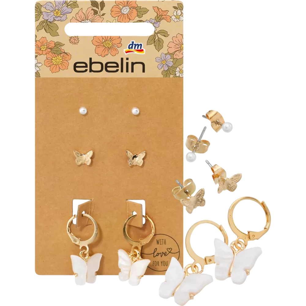 ebelin Combinaison de clous d'oreilles aspect doré avec papillons, 6 pièces.