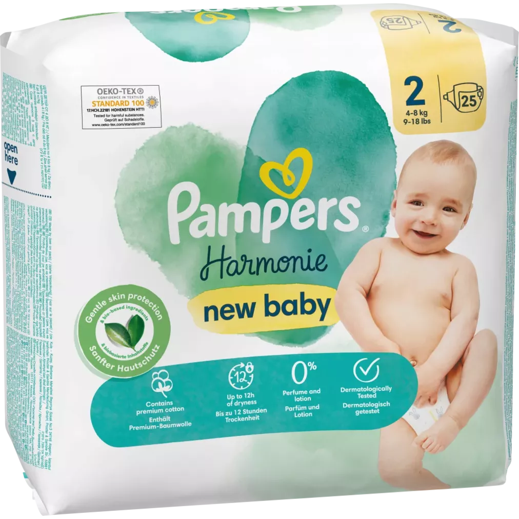 Couches Pampers Harmonie taille 2 Mini (4-8 kg), 25 pièces.
