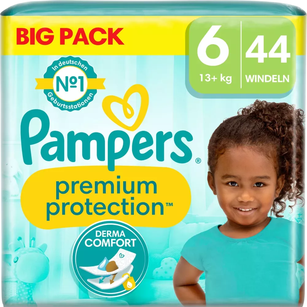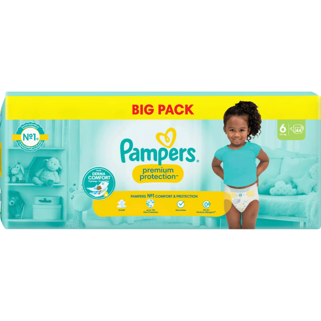 Couches Pampers Premium Protection Taille 6 Extra Large (13 kg et plus), paquet en vrac, 44 pièces.