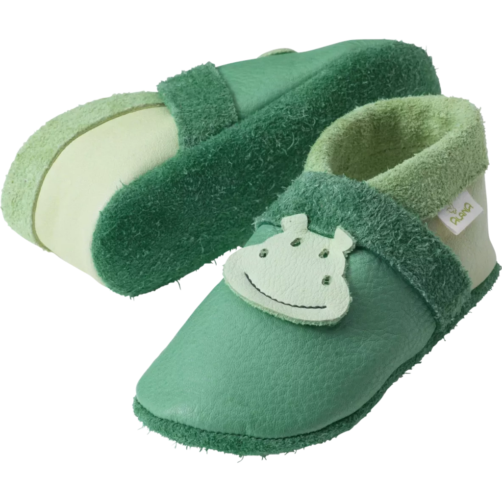 Kinderen gaan vaak het liefst op blote voeten, maar helaas is dat niet altijd mogelijk. Met de leren schoentjes van ALANA worden de voetjes van uw baby beschermd en verwarmd. De groene kruipschoentjes met een schattig nijlpaardengezichtje dragen comfortabel en zijn de perfecte eerste schoentjes voor uw lieveling. Al voordat je kind zijn eerste stapjes zet, zijn goede schoenen belangrijk. Dit ondersteunt uw kroost bij hun eerste pogingen om te kruipen en te lopen, omdat het uw baby gemakkelijker maakt om zich met zijn voetjes van de grond te duwen.